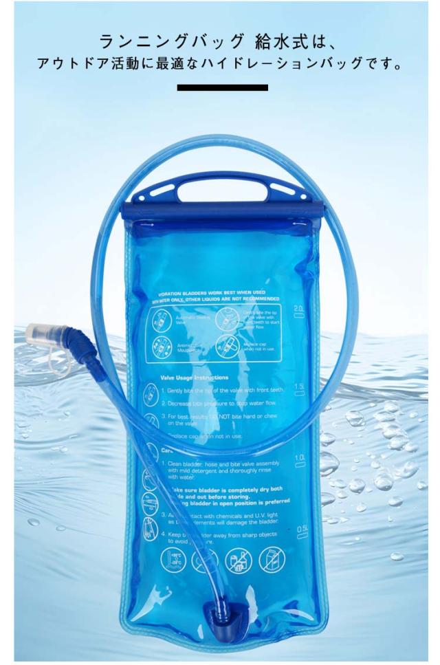 | ランニングバッグ 給水式は、アウトドア活動に最適なハイドレーションバッグです。 1.5L、2L、3Lの容量から選べ、登山やランニング、ウォーキング、マラソンなど多様なシーンで活躍します。 ハンドル付きで持ち運びが容易で、給水がスムーズに行える設計です。 耐久性に優れた素材を使用し、長時間の使用でも安心して水分補給が可能です。 トレーニングやアウトドアでの水分管理に最適なこのバッグで、快適な活動をサポートします。 サイクリング・山登り・ロッククライミング・ランニング・マラソンなど様々な用途にご使用頂けるハイドレーションパックです。 水分補給の為に立ち止まったりせず、運動しながら飲むことができます。 また、非常時、災害時の際に役立つ水袋となります。 | |