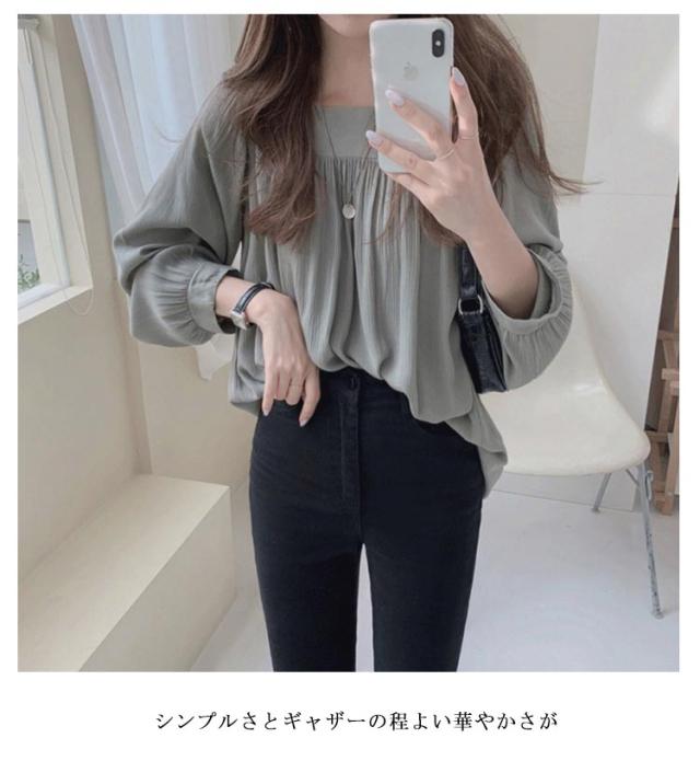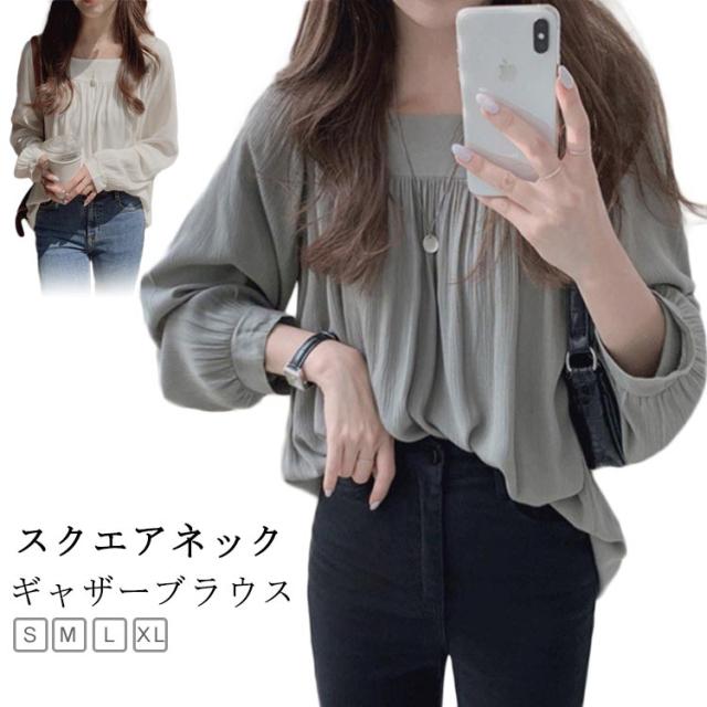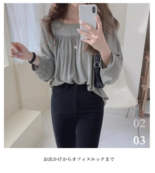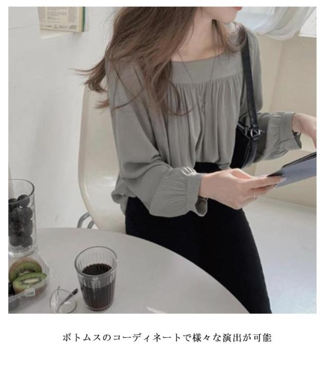 トップス 長袖 レディース シンプル カジュアル 無地 スクエアネック 韓国ファッション フォーマル オフィス シフォンブラウス 春夏秋 きれいめ 薄手 トップス シャツ フリル 透け感 シースルー おしゃれ 春 夏