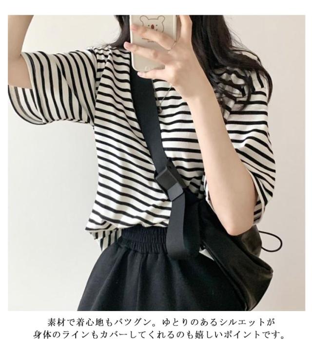 おしゃれ Tシャツ 半袖 カットソー ノーブラ tシャツ レディース 5分袖 ボーダー 夏 大人かわいい tシャツ 丈夫 無地 体型カバー トップス Tシャツ ゆったり カットソー カジュアル 着?せ お洒落 夏服 韓国ファッション