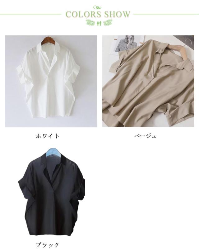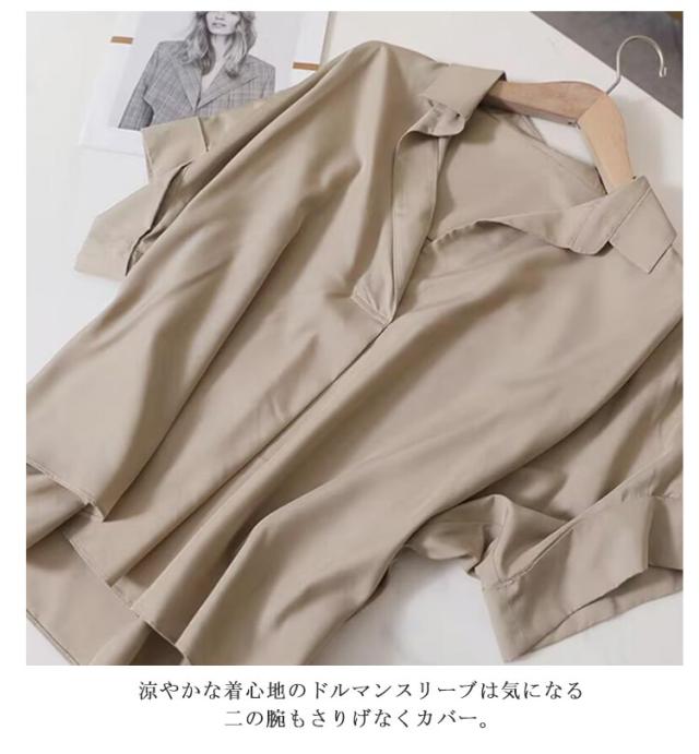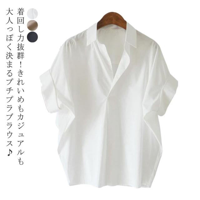 ブラウス ドルマン スキッパー シャツブラウス 半袖シャツ シャツ Vネック トレンド 二の腕カバー 夏 抜け感 着痩せ 体型カバー ドルマン シャツ オフィス 涼しい シンプル カジュアル