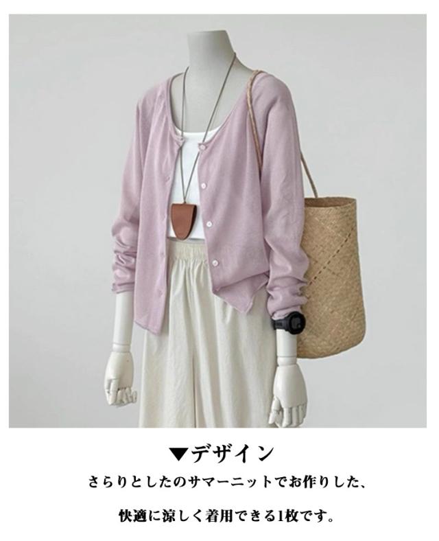ニット サマーニット 長袖 レディース 夏 シアーカーディガン サマー シアーカーディガン シースルー コンパクト 薄手 接触冷感 おしゃれ 羽織り シアーカーディガン コンパクト ショート丈 サマーカーディガン 夏カーディガン ゆったり 冷房対策 日焼止め