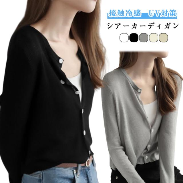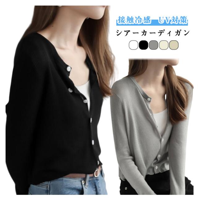 シアーカーディガン 夏 春 レディース 秋 春夏 長袖 シアーカーディガン カーディガン ショート丈 接触冷感 羽織り サマーカーディガン 薄手カーディガン サマーニットカーディガン UV対策 冷房対策 夏用カーディガン