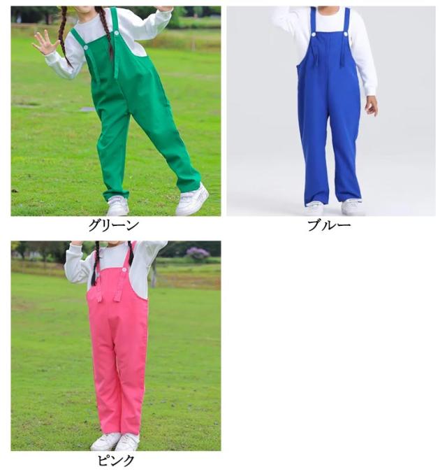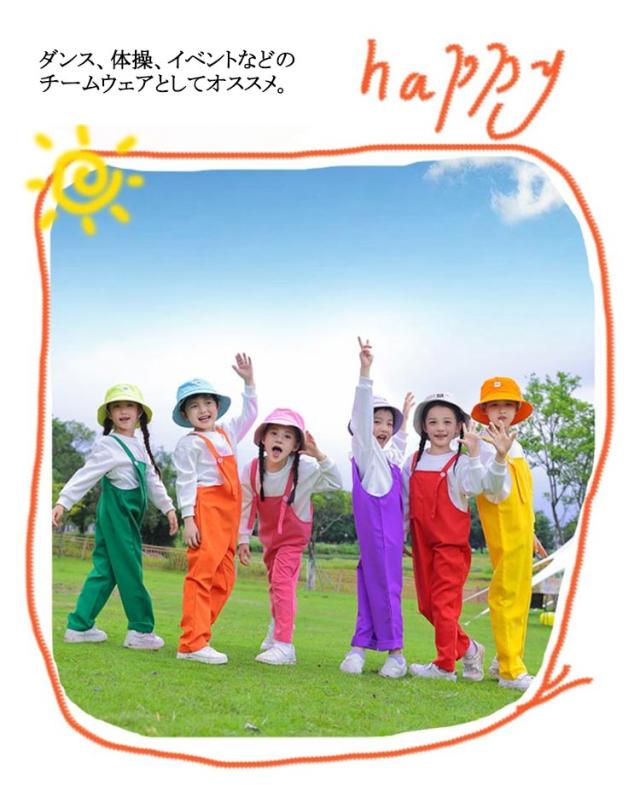 | 100-170cm 発表会や記念写真撮影にピッタリのカラーサロペットパンツ。 明るい色合い、こどもをより可愛く映えます。 ダンス、体操、イベントなどのチームウェアとしてオススメ。 シンプルでおしゃれなデザイン、シンプルなtシャツと合わせるだけで、デイリーも大活躍できます。 | |