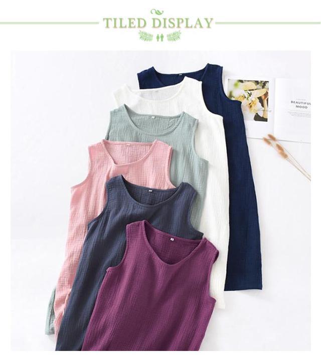 | 【ダブルガーゼ】 【コットン】 【M L XL】 吸汗性と通気性に優れた綿100%のガーゼ生地で肌触りが優しくて、汗をかいてもサラッとしていて快適です。 クルーネックで着脱しやすいです。 袖なしのデザインなので、夏を通して快適にご着用頂けます。 シンプルな色でナチュラルでおしゃれな雰囲気のデザインでルームウェアにも | |