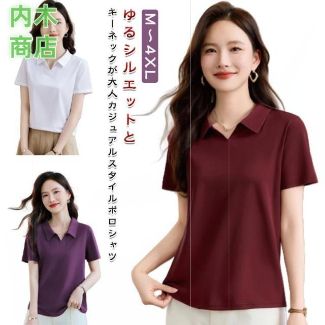話題商品 レビュー高評価 シンプル おしゃれ 体型カバー レディース 通勤 ゴルフウェア 夏 ポロシャツ お出かけ カットソー 薄手 シャツ キーネック 襟付き 半袖ポロシャツ ゴルフトップス 無地 大きいサイズ トップス 春夏 ネック カジュアル
