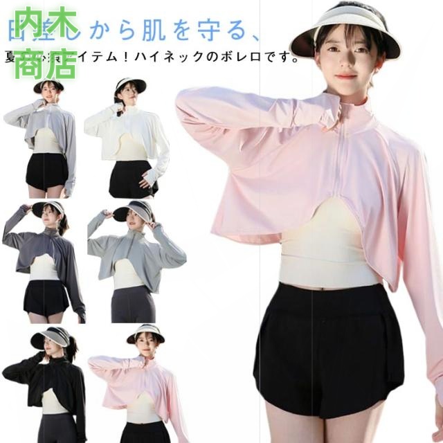 軽量 マント風 薄手 ボレロ ショート丈 接触冷感 お洒落 体型カバー アームカバー カット ラッシュガード 指穴付き 日焼け対策 パーカー風 ゆったり ポンチョ ボレロ 夏用 ハイネック レディース 長袖