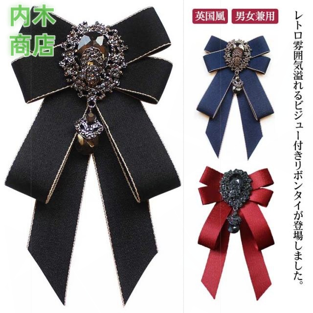 ユニフォーム ゴージャス 制服 英国風 リボンブローチ 送料無料 王子様 ブローチ ラインストーン お姫様 イギリス リボン ファッション小物 リボンタイ ネクタイ