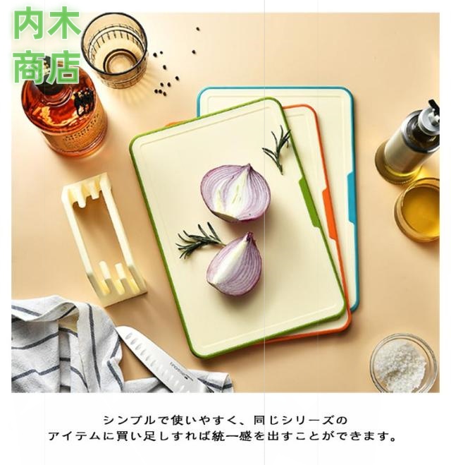 | 使い分けができるまな板3枚セット。風通しが良く乾きやすいスタンド付きで衛生的です。 コンパクトなサイズ感に仕上げており、キッチンで置き場に困らないのもポイントです。 食器洗浄機に対応しているためお手入れも簡単。 肉・魚・野菜など食材に合わせて使い分けができます。 両面ともフチがある形状となっており食材や水分がこぼれるのを防ぐことができます。裏表でも使い分けが可能。 まな板のまわりにすべりにくい加工付。 シンプルで使いやすく、同じシリーズのアイテムに買い足しすれば統一感を出すことができます。 | |
