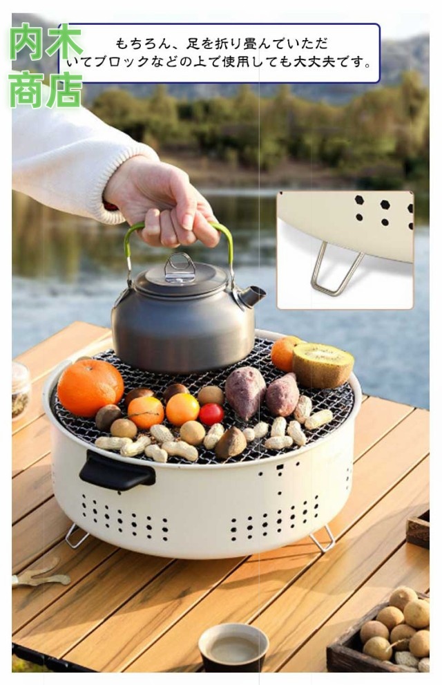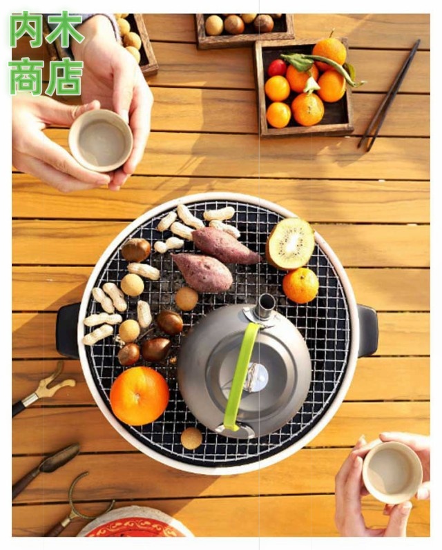 | 【卓上七輪鍋】【アウトドア・キャンプ】 【セット内容】外鍋×1、内鍋×1、焼き網×1、網移動用フック×1 アウトドアやキャンプに大活躍の卓上七輪鍋です♪ 足つきなので、底が触れないのがポイント♪ もちろん、足を折り畳んでいただいてブロックなどの上で使用しても大丈夫です。 軽量でシンプルな七輪鍋は、休日にご自宅のお庭などでコーヒーを飲んだり、食材を焼いてたべたりなど、様々な使い方ができます。 素敵なひとときをお過ごしください♪ ※煙などを吸い込むと大変危険です。室内での使用はお控えください。 | |