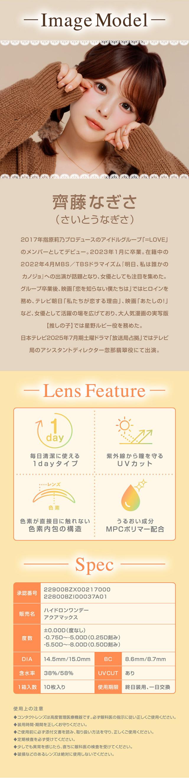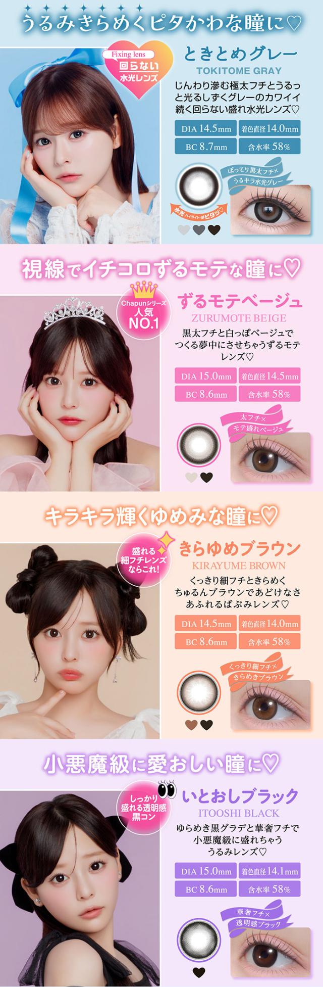 カラコン ワンデー 度あり シャプン Chapun 齊藤なぎさ 1箱10枚入り DIA14.5mm DIA15.0mm BC8.6 BC8.7 水光 軸固定 UVカット 水光 フチあり 大人かわいい ナチュラル 盛れる デカ目 大きめ