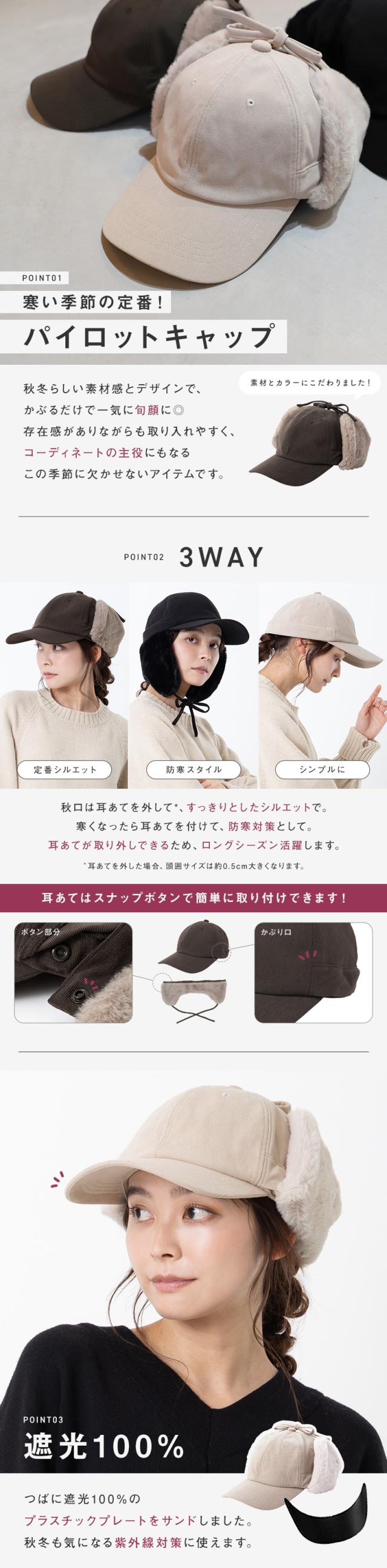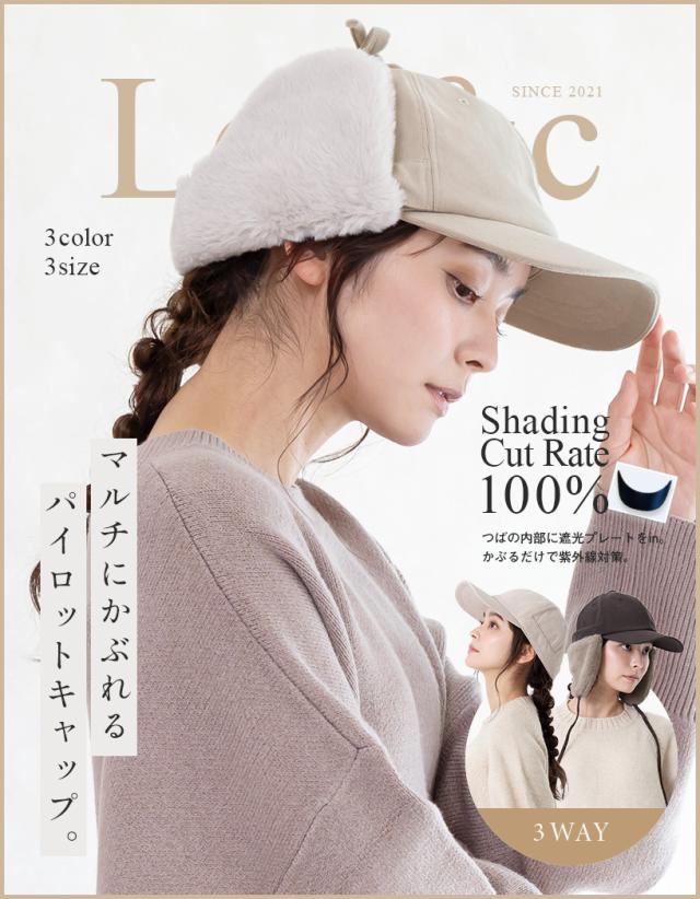 オリヴァーパイロットキャップ(294) 帽子 レディース 大きいサイズ 完全遮光 遮光100% UVカット 日よけ かぶーる日傘 フェイクファー キャップ 秋 冬 秋冬 防寒 耳当て 耳当て付き 56-63cm 2way 3way 取り外し 紐付き あったか