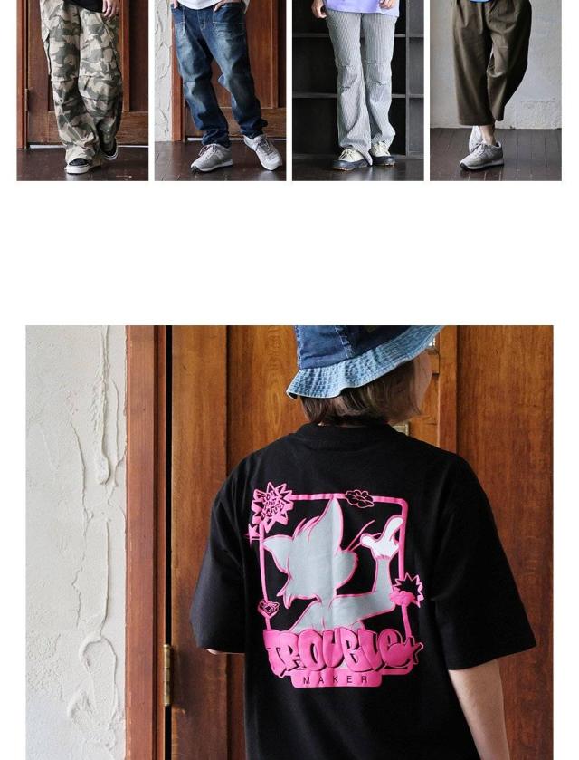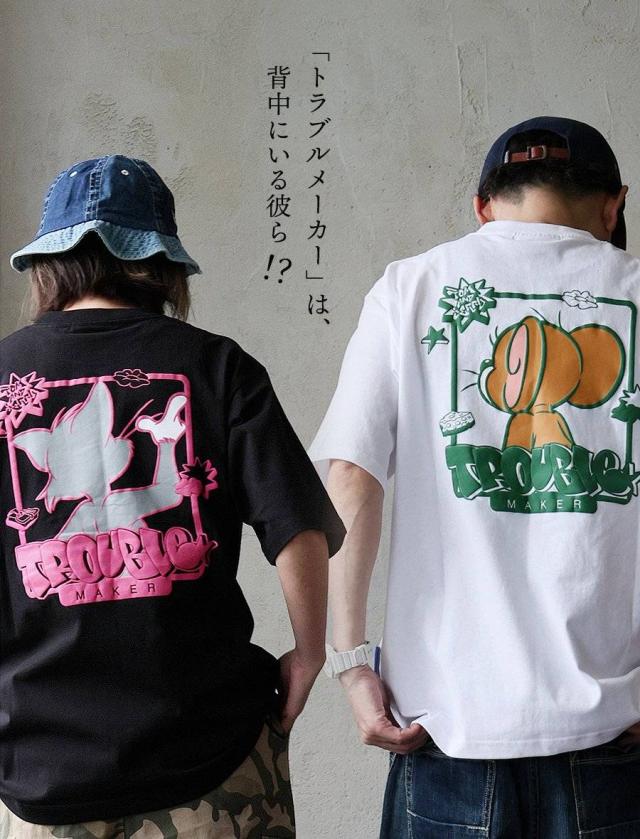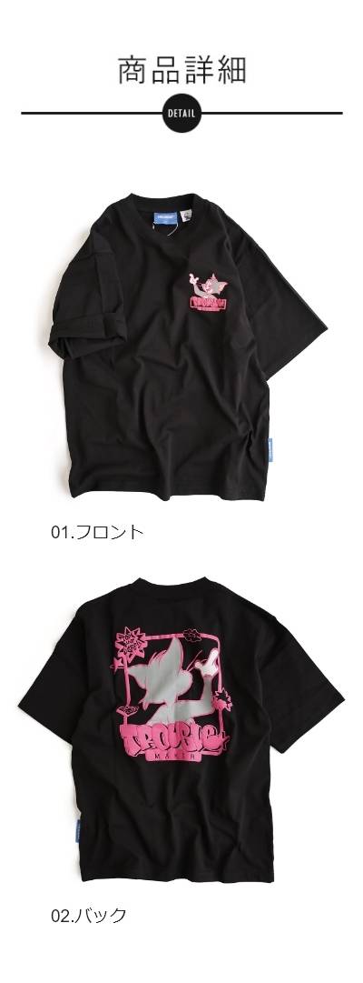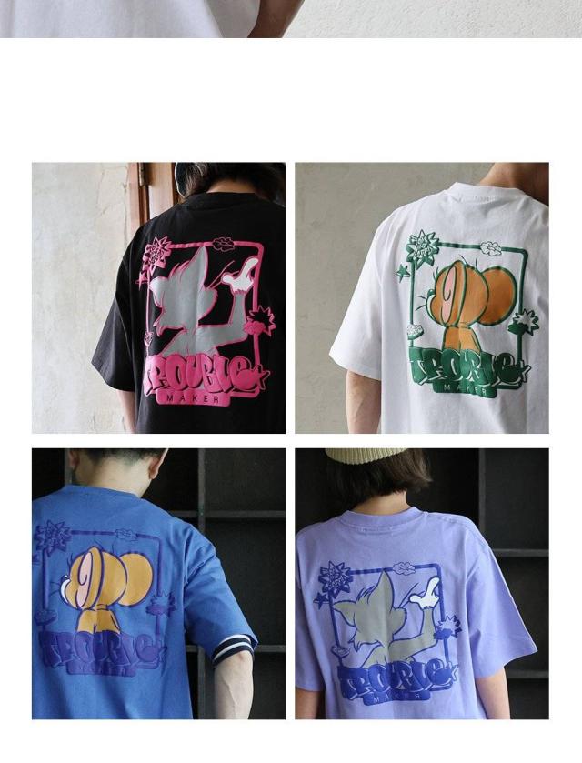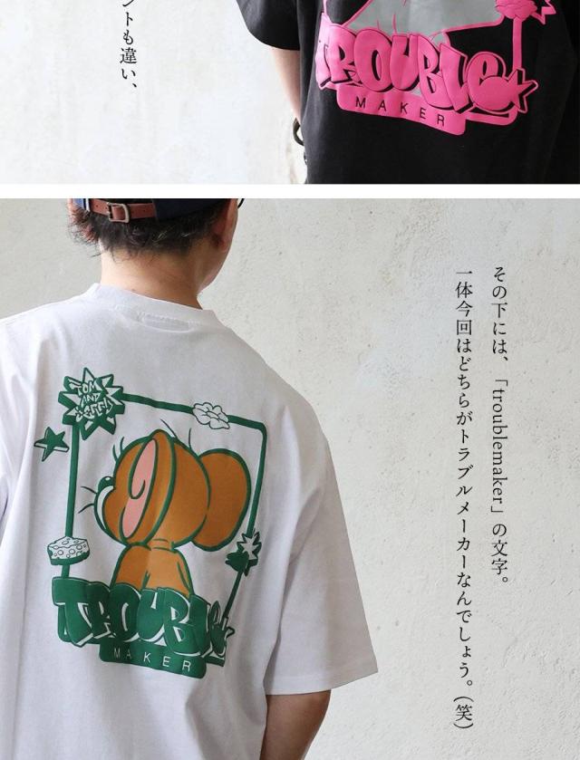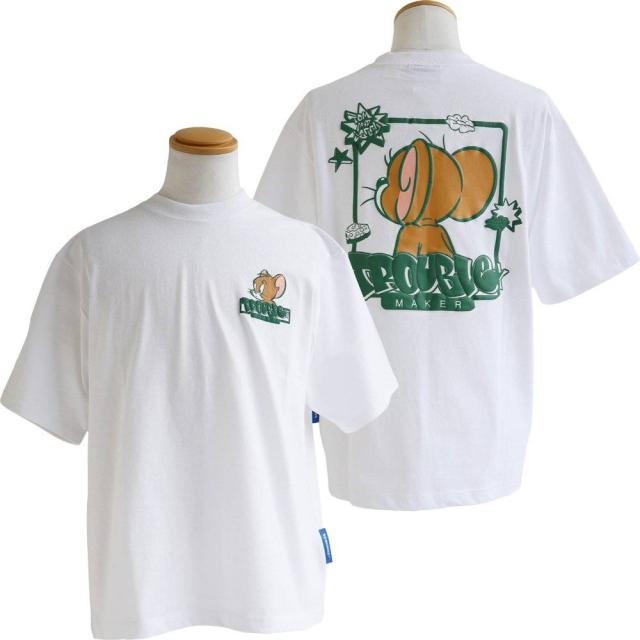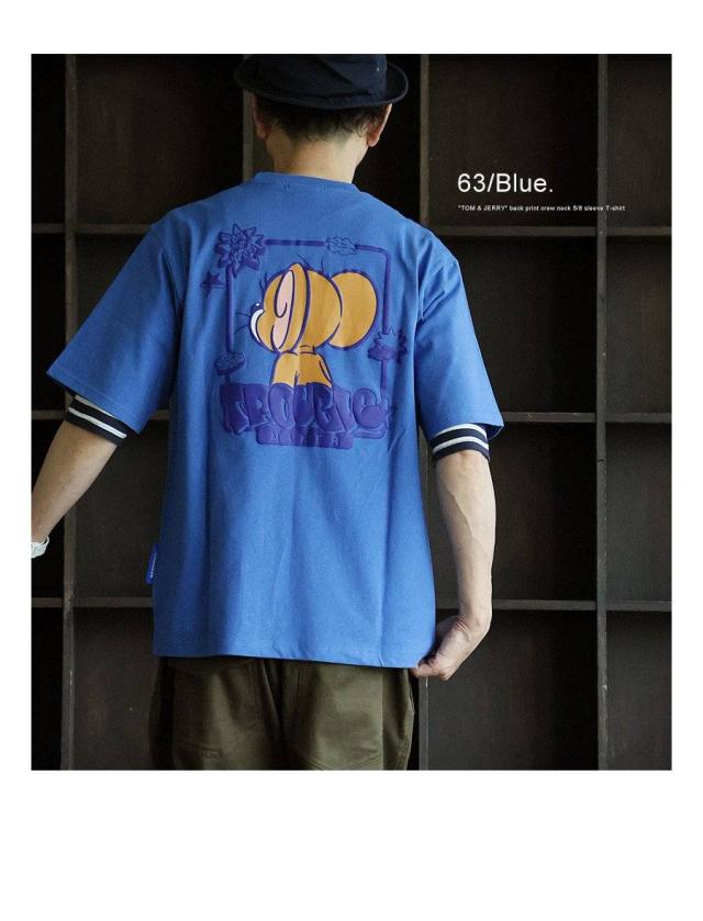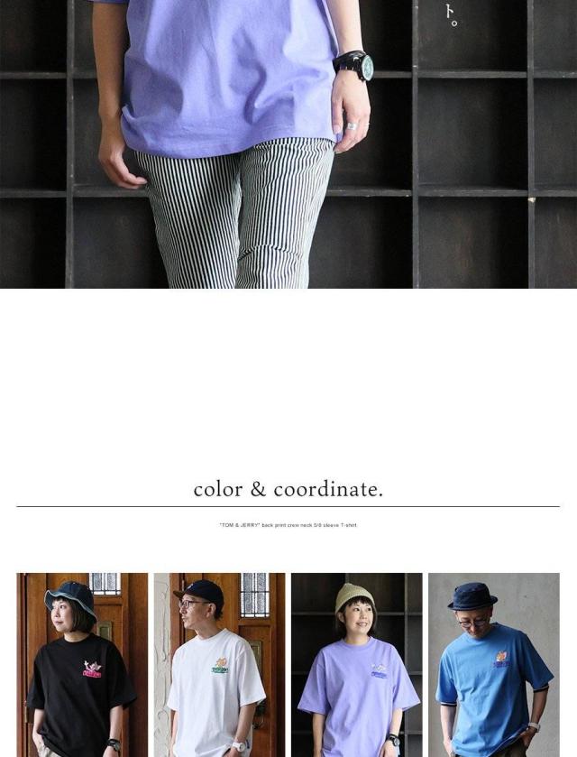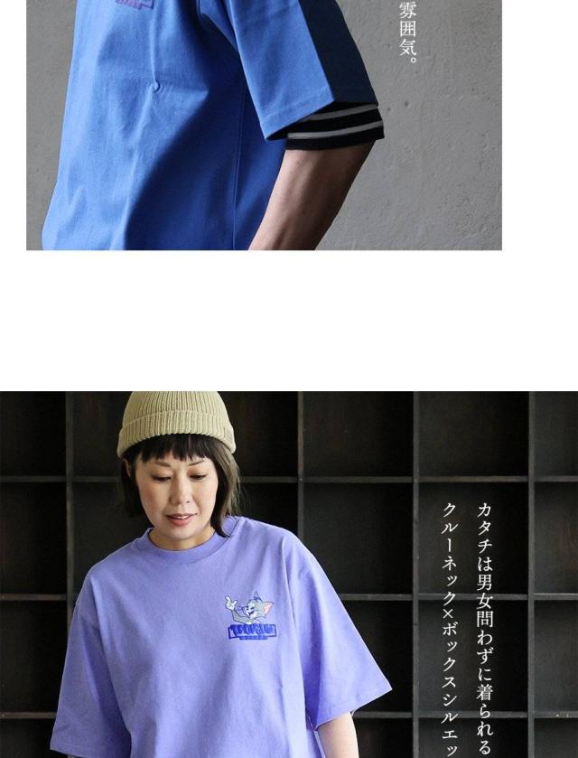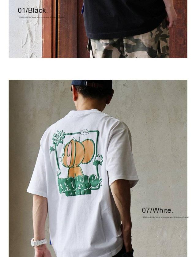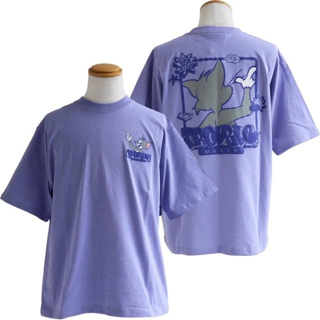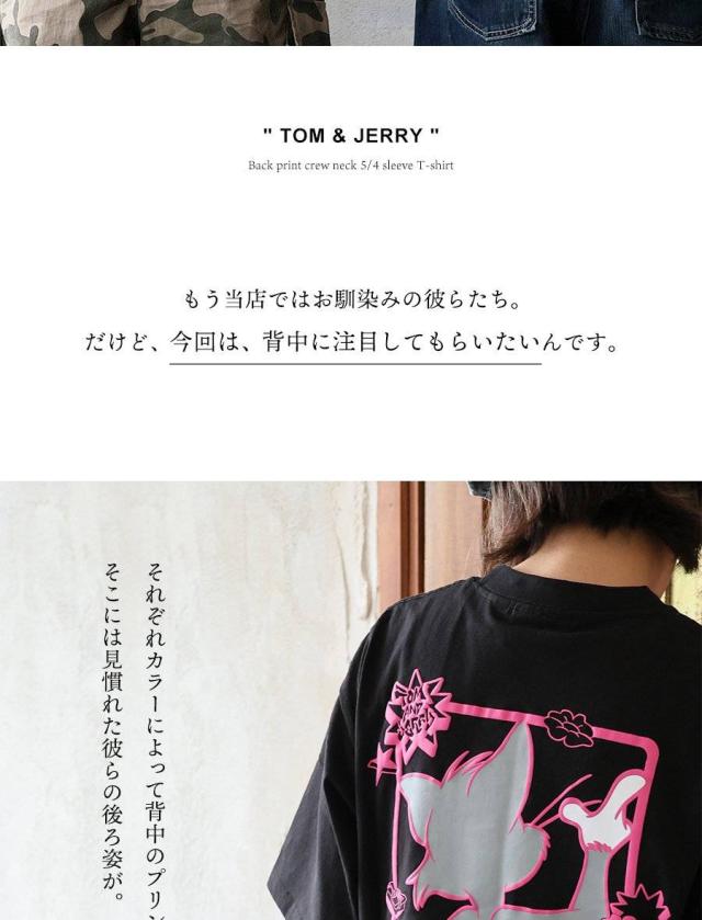 Tシャツ 5分袖 メンズ レディース クルーネック バックプリント トム&ジェリー キャラクター 綿100 コットン オープンエンド 天竺 しっかり生地 大きいサイズ 体型カバー カジュアル 夏 パティ