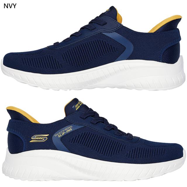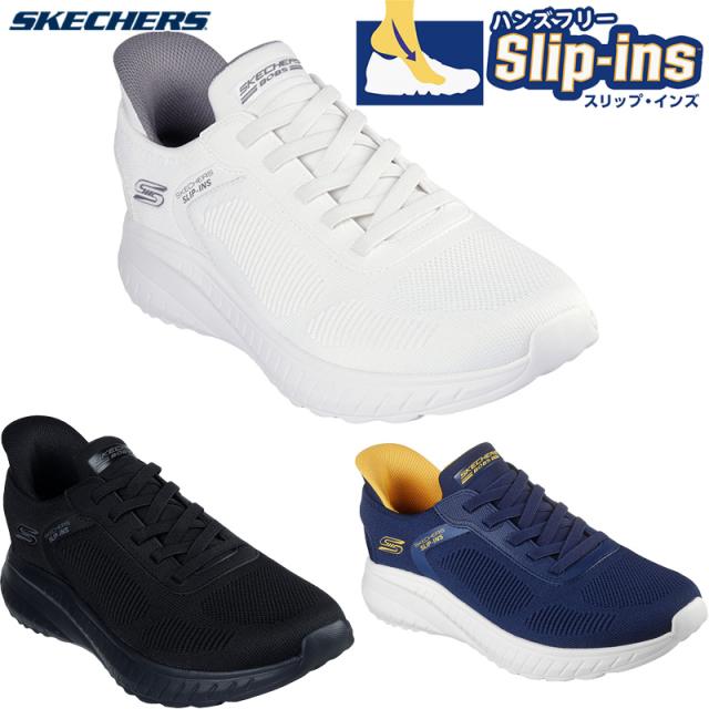 スケッチャーズ メンズ ハンズフリー スリップインズ ボブス スポート スクワッド カオス ソリッド ステップ スニーカー 靴 シューズ ホワイト 白 ブラック 黒 ネイビー 送料無料 SKECHERS 118312W