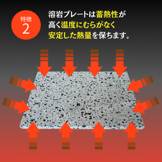 溶岩の特性をフルに生かしたプレートで遠赤外線と輻射熱効果で