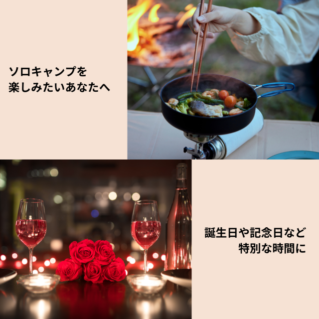 日常生活であれば誕生日やイベントなど、華やかな演出をしたい場面に最適です。食卓に特別感と高級感を取り入れてください。