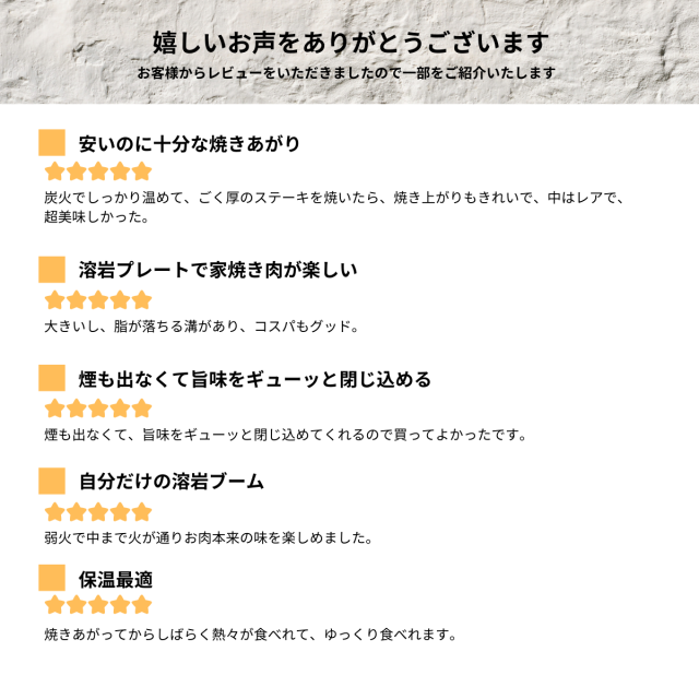 ※溶岩プレートは数度のご使用でヒビやワレが生じることもございます。ご了承下さいませ。