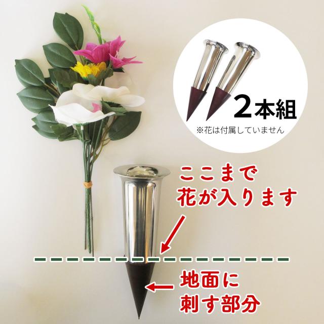 【お墓用】ステンレス野花立 地刺しタイプ 1対2本セット 高級ステンレス製 地面に直接差し込むタイプ 野花立地刺【STクラフト】 B0BSQRN6G6