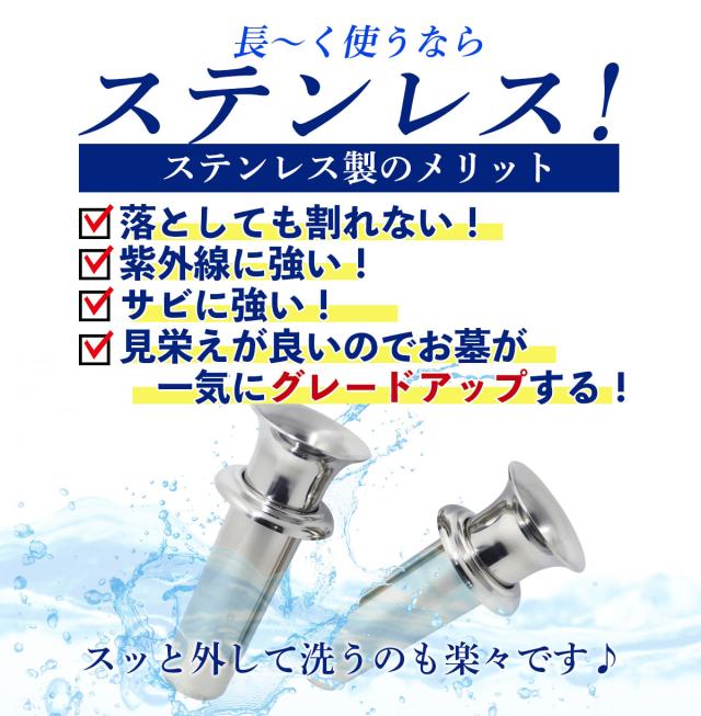 高級ステンレス製で耐久性抜群。錆びにくいので大事なお墓を汚しません。