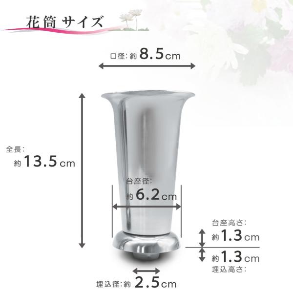 ※注意事項1 台座の固定には 直径 2.5 cm以上、深さ 1.3 cm以上の穴が空いている必要があります ※注意事項2 花立てを取り付ける際には台座を固定する必要があります。付属の説明書&ボンドにて固定して下さい