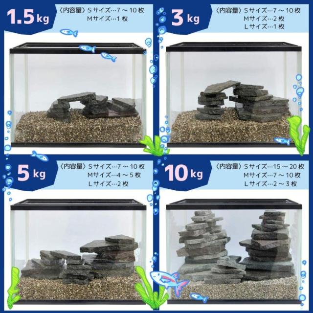水槽に使える鉄平石3kgセットです。積み重ねるだけで誰でも簡単にダイナミックなレイアウトが完成します。