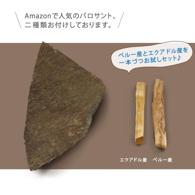 Amazon人気1のパロサントスティク ペルー産1本とエクアドル産1本(計2本)、耐熱プレートのセットです。
