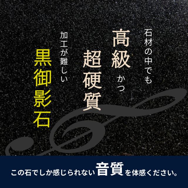岩石の中でも特に比重が高く、硬度最高クラスのエンペラーブラック。音の響き、締りがぜんぜん違う。