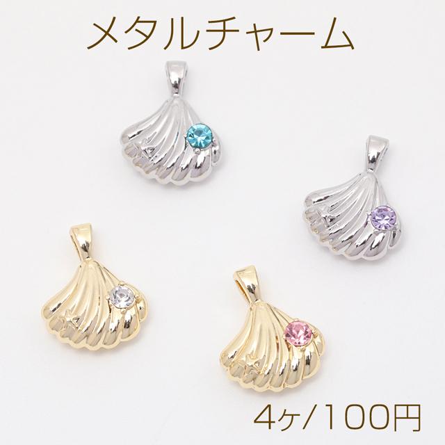 メタルチャーム 貝殻 ホタテ ストーン付き 海 夏 マリンチャーム 約13×17mm(4ヶ)