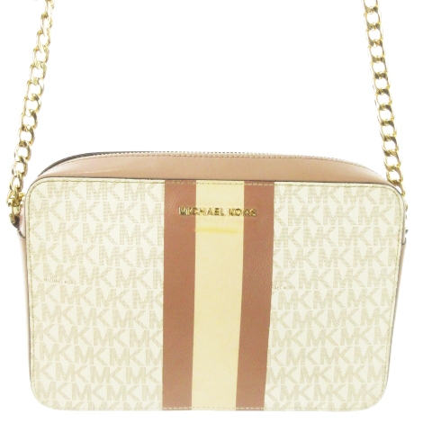 【中古】マイケルコース ショルダーバッグ クロスボディ PVC レザー 革 ストライプ MK柄 チェーンストラップ ピンク