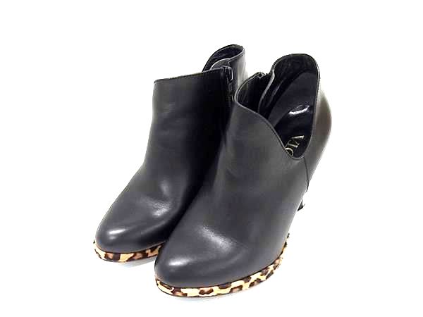 ■美品■ SHOE GALLERY OTA シューギャラリーオオタ レザー レオパード ヒョウ ショートブーツ 靴 シューズ ブラック系 DJ7061