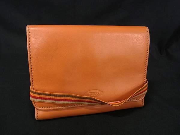 TODS トッズ レザー 三つ折り 財布 ウォレット 小銭入れ 札入れ カード入れ レディース オレンジ系 DJ2643