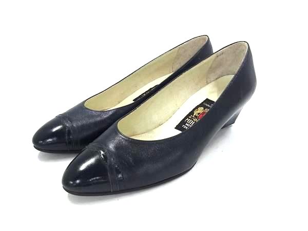 MIHAMA ミハマ レザー ヒール パンプス 表記サイズ 23 1/2 靴 シューズ レディース ブラック系 DI6834