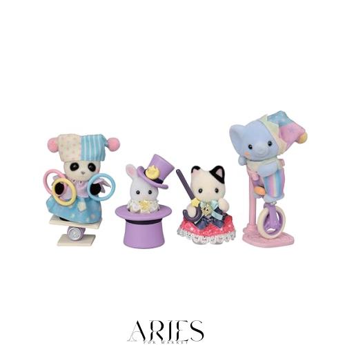 *40周年を記念した特別な商品です。 *ゆうえんちのショータイムにぴったりの赤ちゃん4にんと、小物のセットです。 *ジャグリングやマジックなど、たのしいショータイムのはじまり! *小物は、セットされた赤ちゃんが身に付けられます。 *パンダの赤ちゃんは アンジェラ、ゾウの赤ちゃんは ヒルトン、チャコールネコの赤ちゃんは アンジェリカ、しろウサギの小さい赤ちゃんは ポプラという名前です。