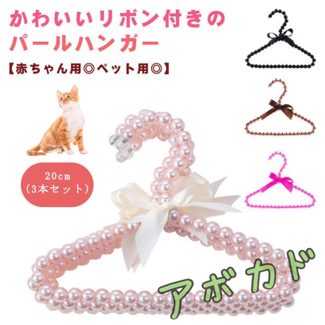 【3本入り】パール ハンガー 20cm 赤ちゃん用 ペット用 衣類ハンガー 猫服 犬服 ハンガー 犬 猫 小型犬 中型犬 小動物服 子供用 お洋服ハンガー 物干しハンガー りぼん付き おしゃれ かわいい 【送料無料】