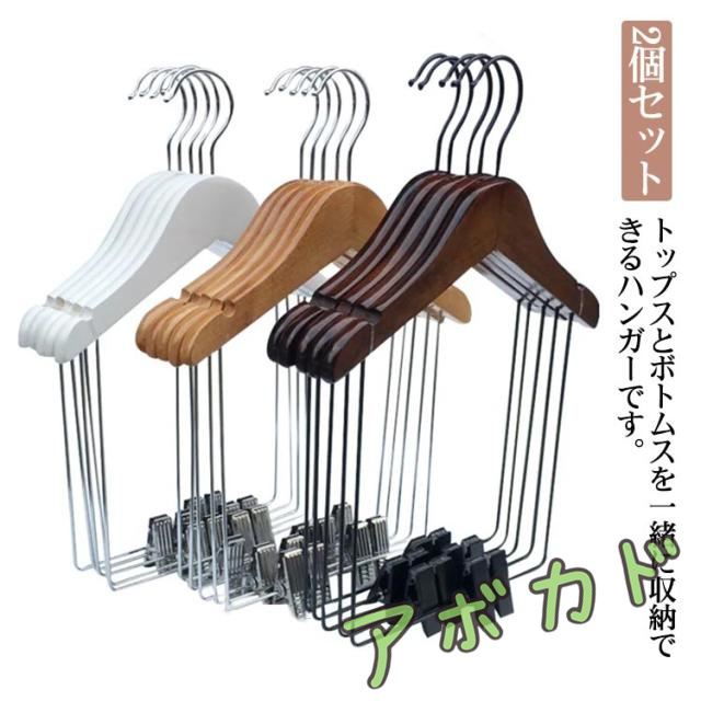 ハンガー 2個セット 木製ハンガー 大人用 キッズ用 セットアップ用 ハンガー スーツ用ハンガー 上下セット ハンガー 洋服ハンガー 衣類ハンガー 収納ハンガー ジャケット ボトム 同時収納 衣類収納 型崩れしない おしゃれ スリム 省スペース ナチュラル 送料無料