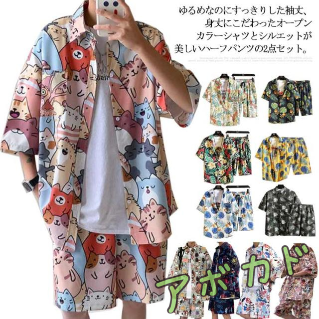 【送料無料】アロハシャツ セットアップ 半袖 ハーフパンツ メンズ 開襟シャツ 夏 ボタニカル柄 ゆったり ハワイアン 総柄 ショートパンツ リゾート 海辺 カジュアル 父の日 プレゼント L 2L 3L 4L 大きいサイズ