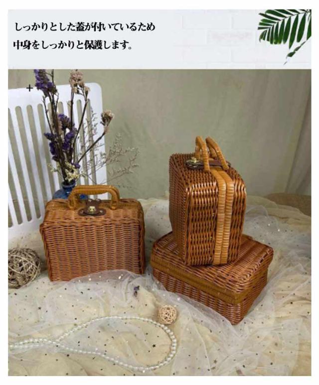 ピクニックバスケット ギフト カゴバスケット キャプテンスタッグ ミニ ラタンバスケット バック ふた付き かご おしゃれ バスケット 籐かご 花火 結婚式 手作り お花見 蓋付き 籠 装飾 撮影 道具 贈り物包装 遠足 母の日 ピクニックバスケット S M