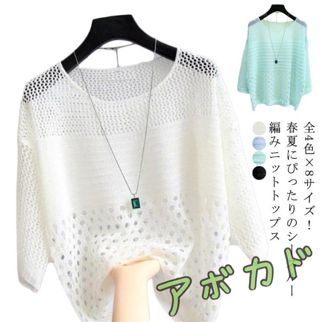透け感 無地 ニットソー シースルー編みニット 薄手 プルオーバー 透け編み クルーネック 可愛い 女性 シースルー サマーニット 日焼け対策 ゆったり 体型カバー 無地 シンプル トップス 夏 UVカット 重ね着 ニットトップス 春夏 大きサイズ 着?せ 大人 長袖