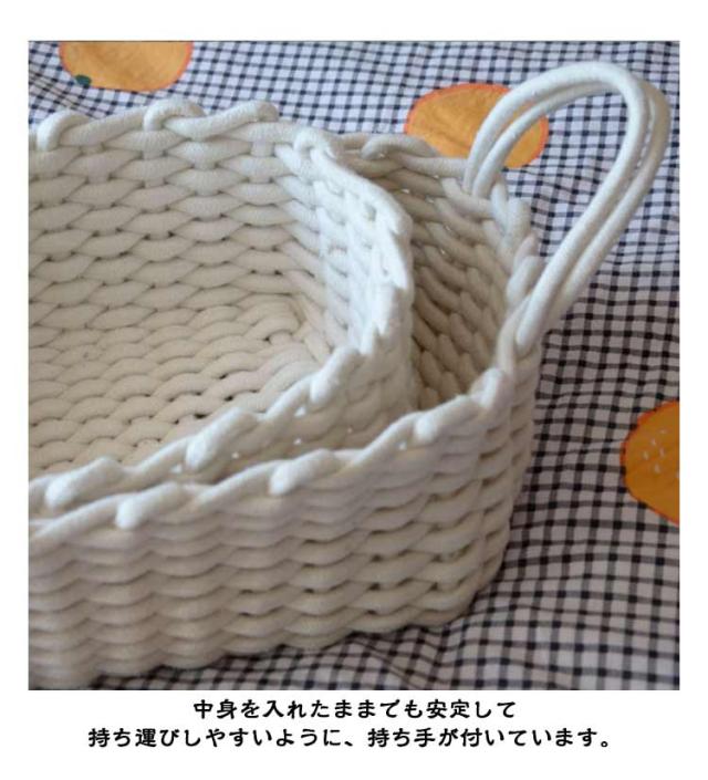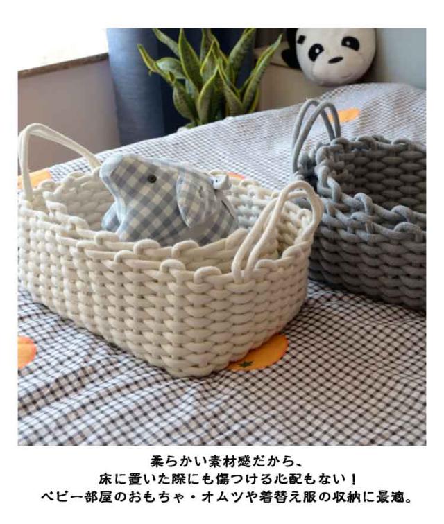 | 収納スペースにも安心安全!コットン収納かご コットン素材を採用して、ナチュラルでおしゃれな風合いのある雰囲気に♪ 柔らかい素材感だから、床に置いた際にも傷つける心配もない!ベビー部屋のおもちゃ・オムツや着替え服の収納に最適。 中身を入れたままでも安定して持ち運びしやすいように、持ち手が付いています。 シンプルでおしゃれなデザイン、インテリアを邪魔にならず、ストレージのニーズを満たして生活を楽しめます! | |