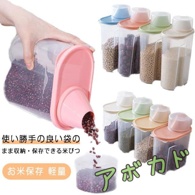 | 使い勝手の良い袋のまま収納・保存できる米びつ 縦にも横にも置けるから冷蔵庫保存に便利です。 蓋も兼用の計量カップは、ひねって簡単に開け閉めできます。 お米だけでなくシリアル食品やペットフード入れなどにも便利です。 | |