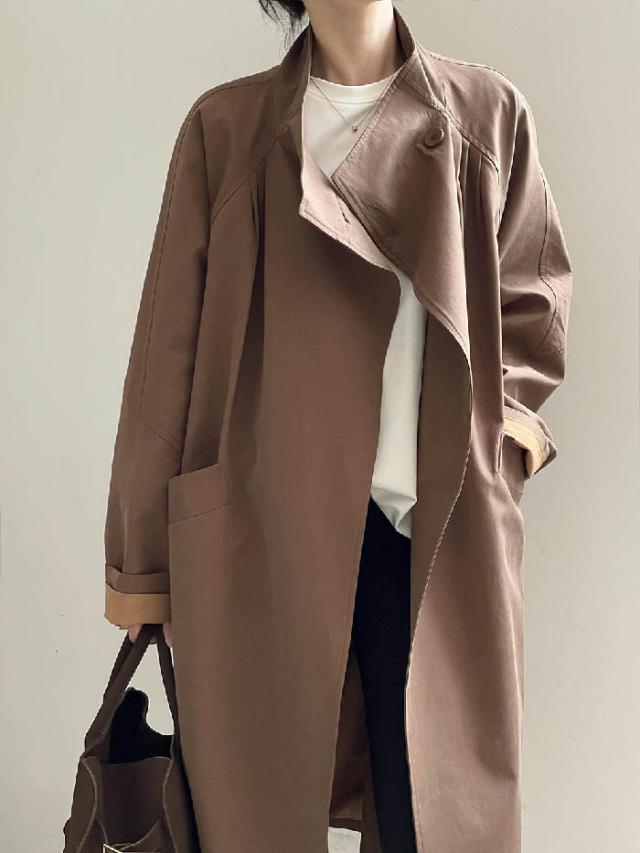 トレンチコート レディース ロング 春 秋 通勤 カジュアル スタンドカラーコート スプリングコート ロング丈 ジャケット 羽織り ロング丈 大きいサイズ コート アウター 上品 体型カバー