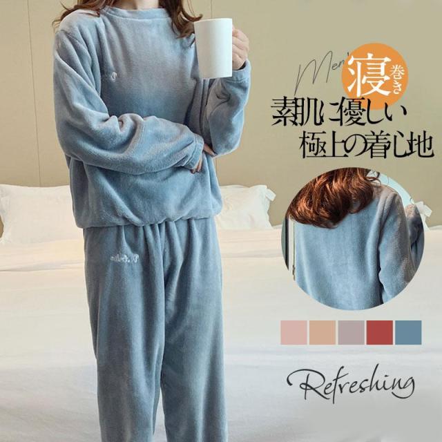 パジャマ 裏起毛 レディース 冬 暖かい もこもこ ルームウエア 秋冬 部屋着 セット フリースパジャマ ナイトウエア 2点セット 長袖 秋冬 裏起毛 上下 厚手 ふんわり 入院 産後