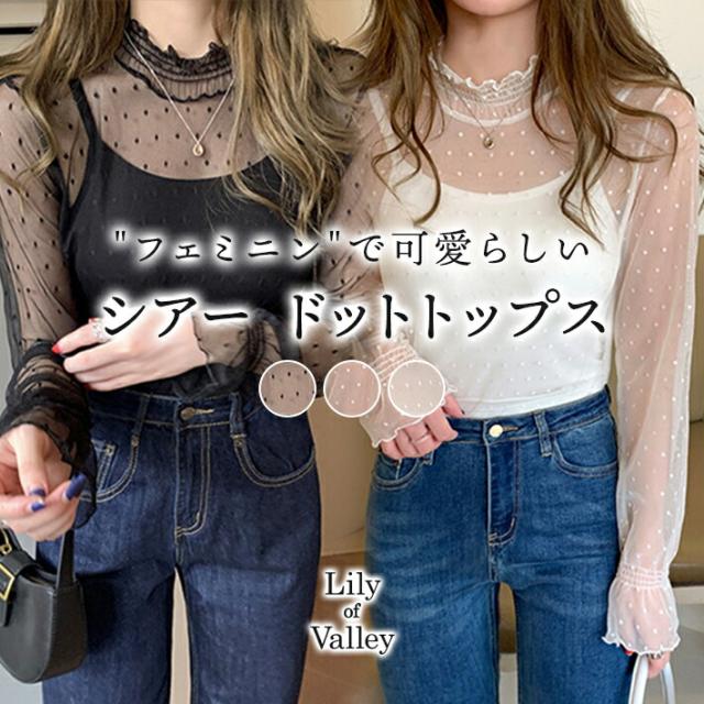 送料無料&即納★ ボトルネック シアー ドット トップス 長袖 上品 きれいめ 大人可愛い 清楚 フリル メロウ / レディース 清楚 インナー レース 水玉 カットソー 薄手 シースルー オフィスカジュアル ハイネック 韓国 パーティー お呼ばれ 白 黒 ホワイト ブラック 秋冬 春