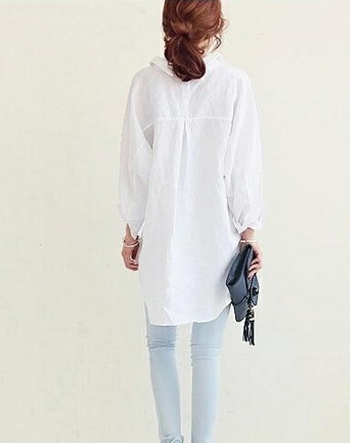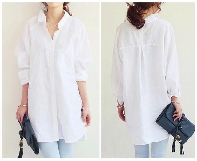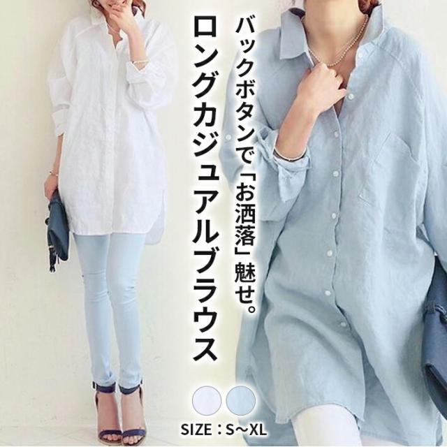 送料無料&即納★ レディース チュニックシャツ オーバーサイズ コットン ブラウス バックボタン 長袖 ロング カジュアル 青 白 白シャツ 白ブラウス トップス 長袖 ロング 背中 バック ボタン 大きいサイズ 襟付き チュニック きれいめ 白 青 ホワイト ブルー 春 夏 秋 春夏