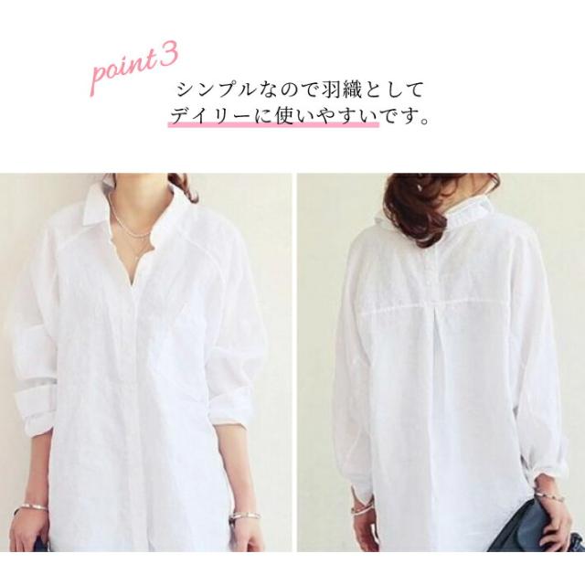 バックボタンがポイントの2WAYロングカジュアルシャツ オーバーサイズ 綿 コットン ブラウス 長袖 ロング ゆったり オフィス 青 ブルー 白 ホワイト 大きいサイズ 襟付き 春 夏 秋