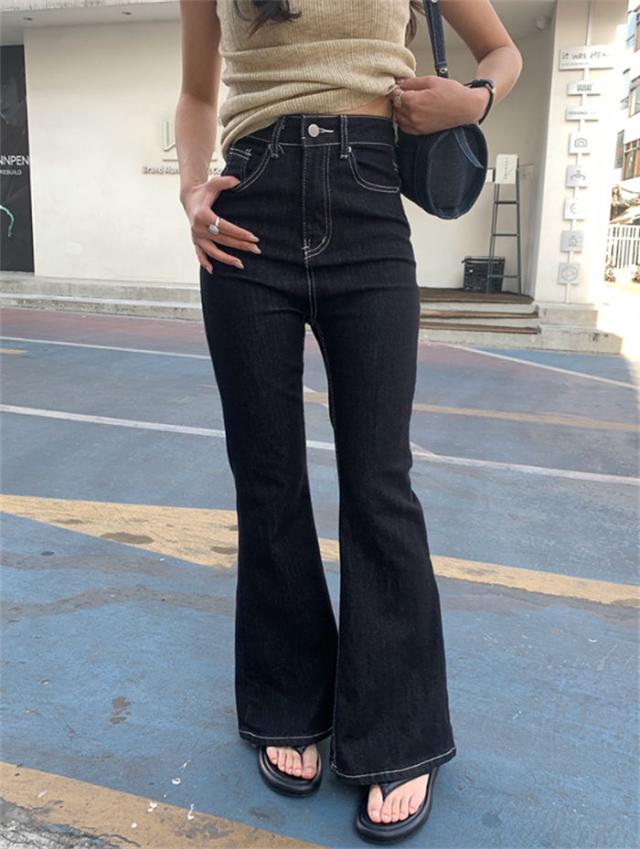 フレアパンツ レディース デニム ハイウエスト フレア ベルボトム デニムパンツ ベルボトムパンツ パンタロン ジーンズ ワイドパンツ ジーパン レトロ モード ブラック ダークブルー