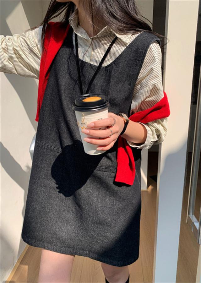 デニム ジャンパースカート 大人 ミニ