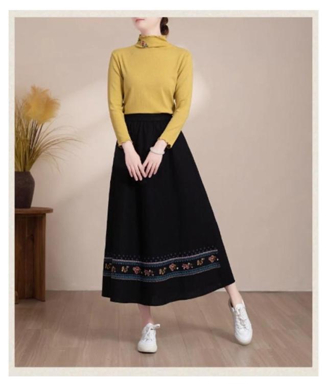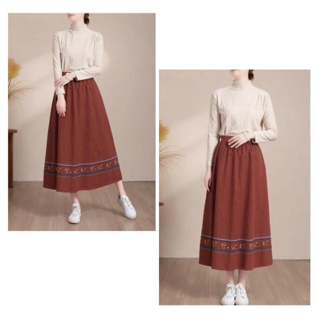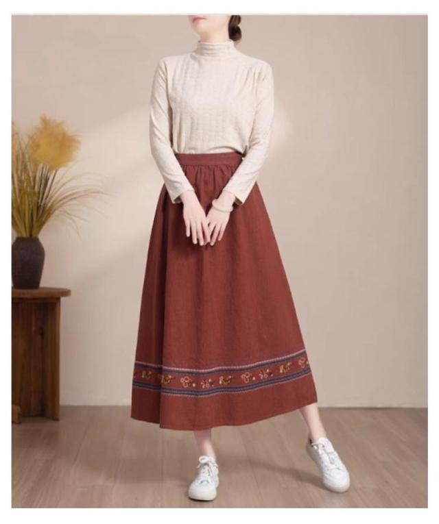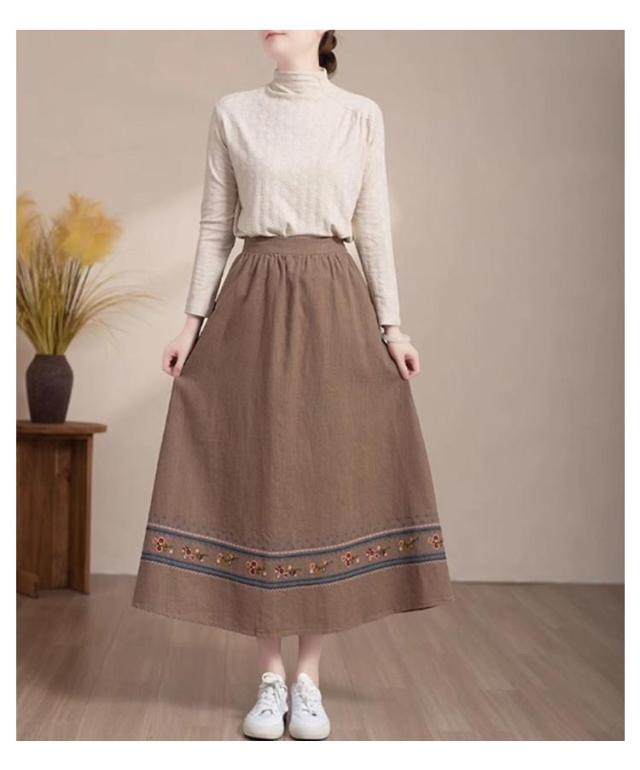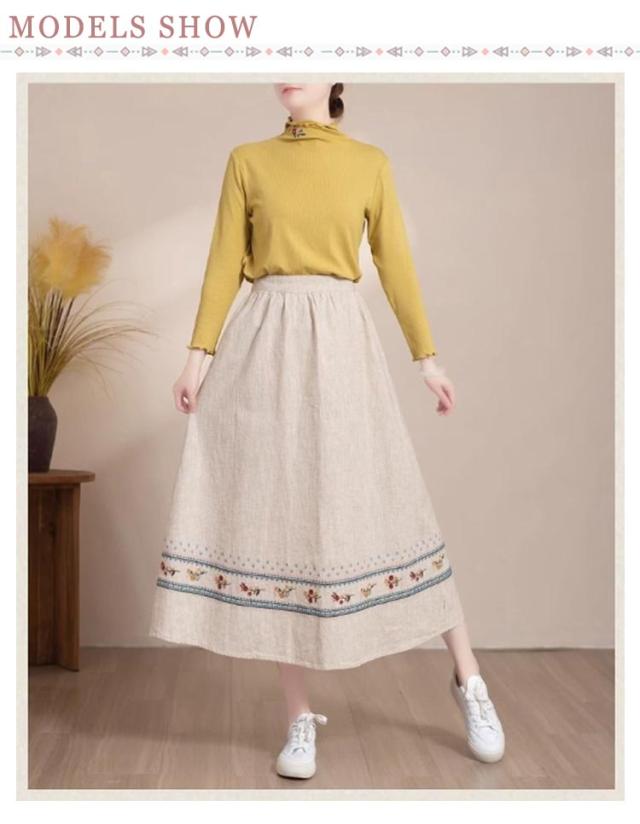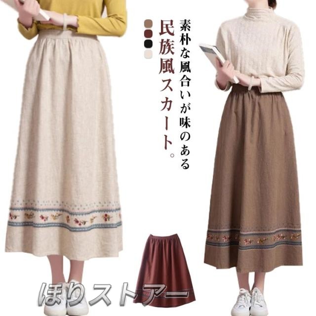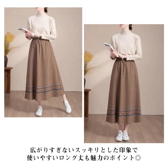 | 素朴な風合いが味のある民族風スカート。 民族調の刺繍を裾に添えたAラインスカート、シンプルなトップスと合わせるだけで人に被らないコーディネート。 広がりすぎないスッキリとした印象で使いやすいロング丈も魅力のポイント◎ | |