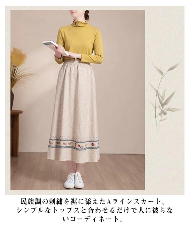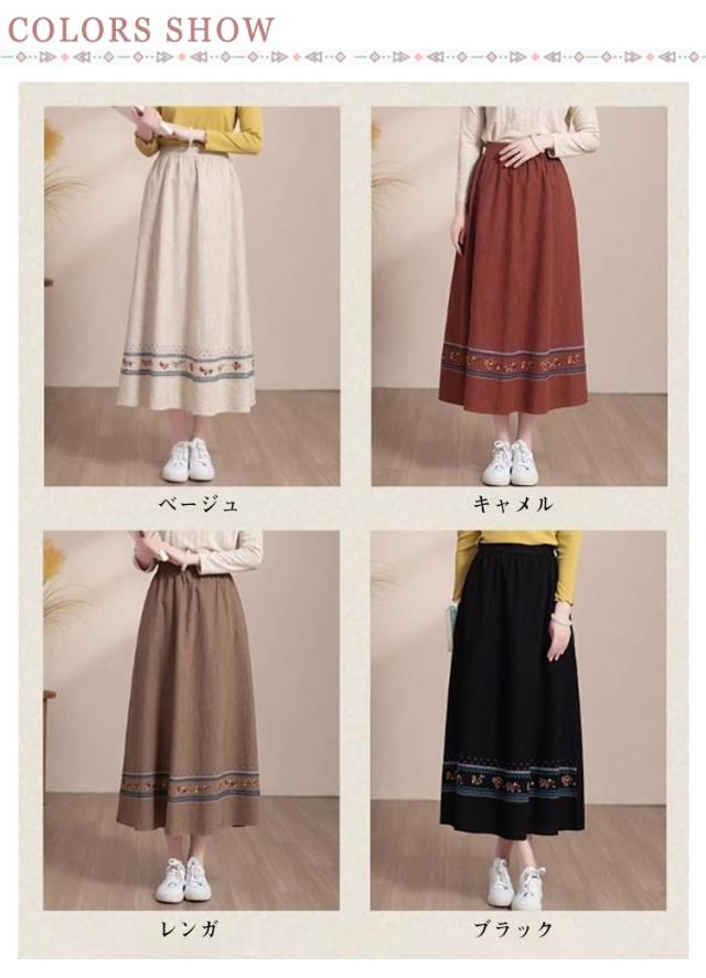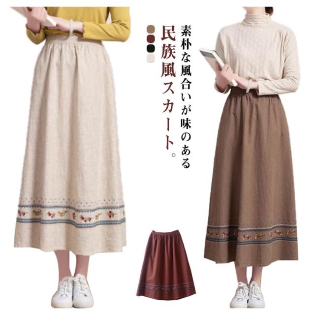 リネン風 膝下 送料無料 綿麻風 ロングスカート スカート ミモレスカート レディース スカート ロングスカート スカート おしゃれ ウェストゴム アジアン 民族風 ボトムス エスニック ロング丈 スカート