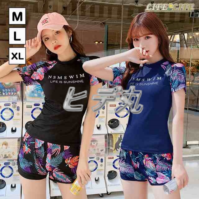水着 レディース セパレート 体型カバー スポーツウエア 上下セット 半袖 ワンピース水着 レディース 水着 体型カバー ラッシュガード 2点セット トップス ママ水着 20代 30代 40代 50代 ネイビー ブラック M L XL 母の日
