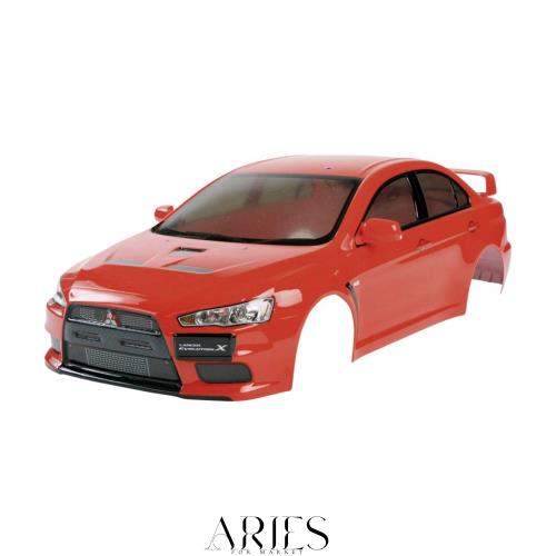 2007年にフルモデルチェンジを受けてさらなる進化をとげたランサー エボリューションX。 ジェット戦闘機をイメージした台形のエアインテークを持つフロントマスク、エアアウトレットが開けられたボンネットやフロントフェンダーなど、戦闘的なムードあふれるフォルムをポカーボネートでリアルに再現しました。 LED取付可能な前後ライトケース付属、最大接続灯数はφ5LED:8ヶ、φ3LED:6ヶ。 TT-01シャーシ各種 (ノーマルホイールベース仕様に適合します)、DF-03Raに適応。